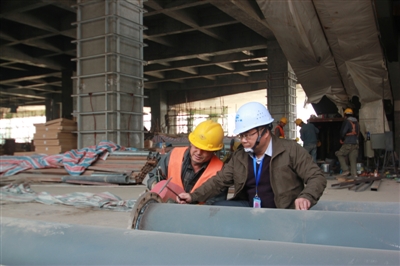 张明(右)在检查焊口