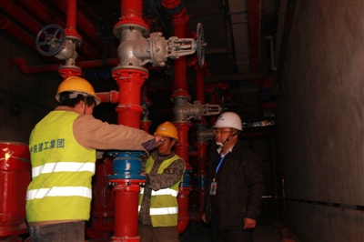张明(右)在检查泵房