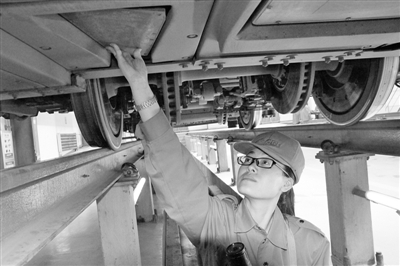 在对高铁动车首尾车头实施检查时,吕斯和同事都要步行480米。“对一辆高铁动车检查就要走上四趟,一晚上检查十多列高铁动车,光走路就要上万米。”吕斯说,每天深夜的工作紧张而忙碌,每个人都是脚步如飞。