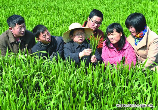 “眼下正是小麦抽穗的季节,碰上倒春寒,一定要注意田间管理! ”4月14日,亳州市农科所副所长刘伟民在涡阳皖麦38-96种植基地对试种农户说。皖北是我国小麦主产区,以前亩产量只有五六百斤,而从全国情况看,优质强筋小麦的产量更少,每年都需大量进口。 1982年,大学毕业后分配到亳州市农科所从事育种的刘伟民,下定决心培育皖北高产强筋小麦。这是一项繁琐而耗时的工作,同时需要智慧和体力。刘伟民要对试验区里的杂交小麦品种进行播种、管理、观察、记载、选择、收割,再对收获的小麦进行比对化验,筛选出理想的“良种”,然后再播种、管理……每年4月,他带着“马扎”在麦田给杂交小麦授粉,一坐就是一天。刘伟民育种到了痴迷的状态,一次在家中淘米做饭,竟然把米粒当良种数了起来……