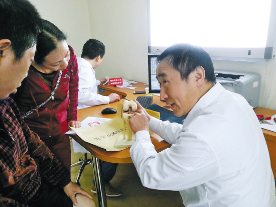 “你这样每个人都查体,还得解释半天,多累啊!”采访时记者问。“病人如果不知道他究竟是什么原因引起的痛,治疗的依从性就会差一些,你跟他解释清楚,他们听话治疗,往往效果会好一些,至于要手术的病人,更要说清楚是人体哪个零件出问题了,弄明白了他们心理压力会小一些。”他对记者解释,作为医生不能过分依赖各种检查报告,体格检查对诊断很重要,其实有的疼,你按一按摸一模,根据病人的反应结合病史就大概能清楚病因了,如果只看检查单不重视查体,就有点本末倒置,那样看病不行!