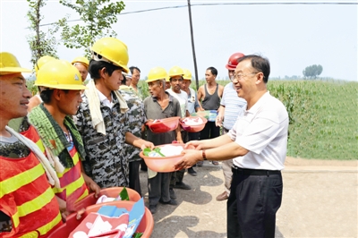 文水县人大常委会副主任、县总工会主席陈保平慰问筑路员工