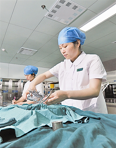 图为该院手术室护士周莹(右)怀孕后仍坚守工作岗位。罗衡辉摄