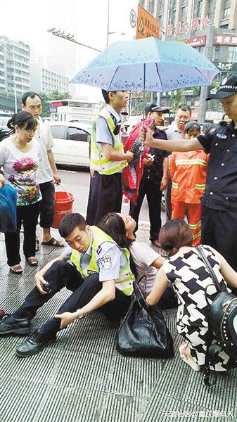 交警帮受伤女子赢网友点赞:借背依靠 守护生命(图)