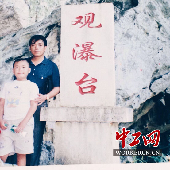 孙鹏,中铁十四局集团隧道公司北京地铁昌平线项目部的一名学员,他的父亲曾经是一名铁道兵,1983年铁道工程兵转业到了中铁十四局集团工作,现在他的父亲在二公司机关工作。6岁的时候,也就是在孙鹏上小学之前,父亲带他一起到贵州黄果树瀑布游玩,留下了这张难得的合影。从1997年到2015年,已经过去了18个年头,孙鹏竟然没有再跟父亲单独合过影。泰安到北京,两个半小时的车程,却因为工作的缘故,聚少离多。记得高考的时候,每天只有晚自习下课时,他才有机会与父亲交流,因为工作劳累,等他下晚自习的时候,常常是父亲早已在车里睡着了。孙鹏父亲的胃病一直是他所担心、牵挂的,每次也只能往家里打电话提醒他少喝酒以免胃病复发,却没有办法亲自在他身边照顾他。说到这里,孙鹏内心有一丝愧疚。