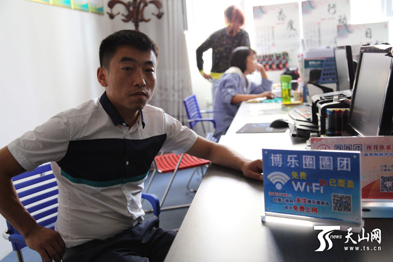 半个小时后,记者见到了此行的采访对象——博乐市微商网络科技有限公司执行总监陶万武,他刚刚和一家客户谈完业务,回到自己办公室。“谈好了,和博乐市一家比较大的商户,我在他的店免费安装wifi。现在我的wifi已经覆盖了60多家大的商户。”陶万武一边倒水,一边打开了话匣子。