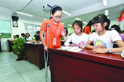 朱金凤在合肥习友小学的“行知学堂”给留守儿童上课。