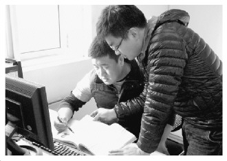 图③ 难得在办公室的崔林,抓紧时间与同事研究案情。雍启辉摄