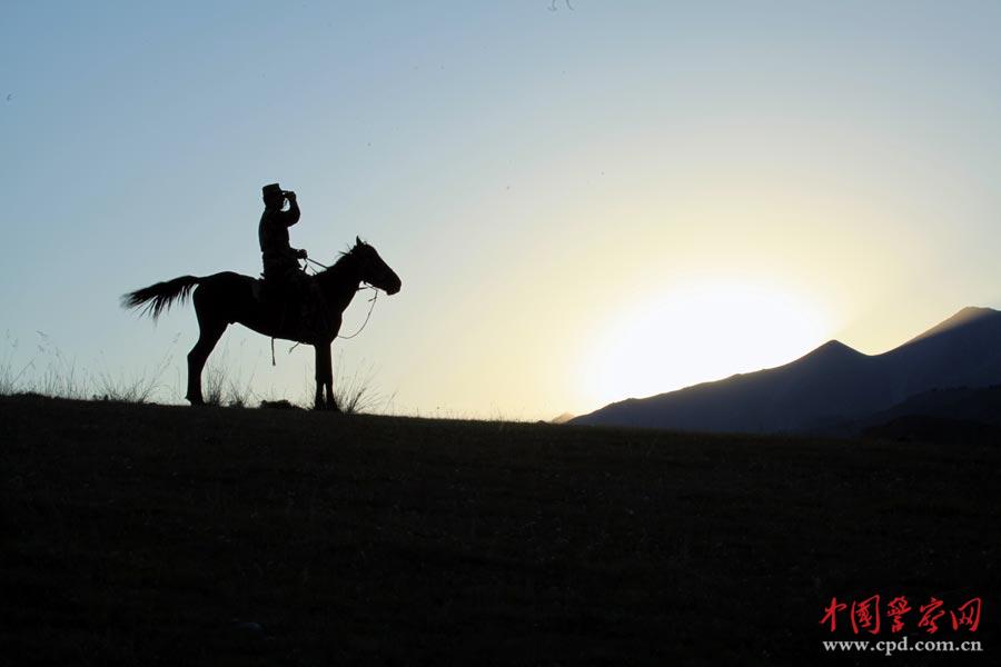 脸庞红黑、胡子拉碴,熟边境、善骑射,如果不是一身戎装,人们很容易误把边防民警佟晨曦当做普通牧民。