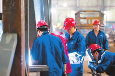7月19日,南阳二机集团又一台海洋石油钻探机井架进入焊接关键时刻,钢结构一分厂电焊工孔勇正在现场解决技术难题。