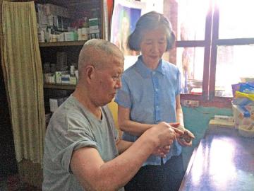 7月18日下午,记者来到了内江白马镇的白马中心卫生院,穿过医院侧门的小巷,一栋老式楼房的4楼,便是夏剑宾的家。他的妻子尹美华正在沙发上缝衣服,听到他们用普通话交流,记者才知道,夏剑宾来自江苏宜兴,尹美华来自江苏南京。