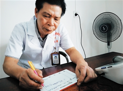 在长达40年的漫长行医生涯中,陈雄从不乱收费。 徐一豪 摄 人物简介: 陈雄 洋浦经济开发区咸塘居委会卫生所乡村医生 推荐人(单位): 洋浦经济开发区社会发展局 投票编号: 3030