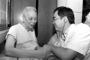 在熟练地绕过一段修建中的道路,穿过几条小巷后,王乐来到了罗大爷家。“血压如何?”“走路还累不累?”……86岁的罗大爷2008年做了直肠癌手术,这几年在王乐的管理下身体也算健康,但王乐对罗大爷的管理却从不放松,每隔几天都要来看看。