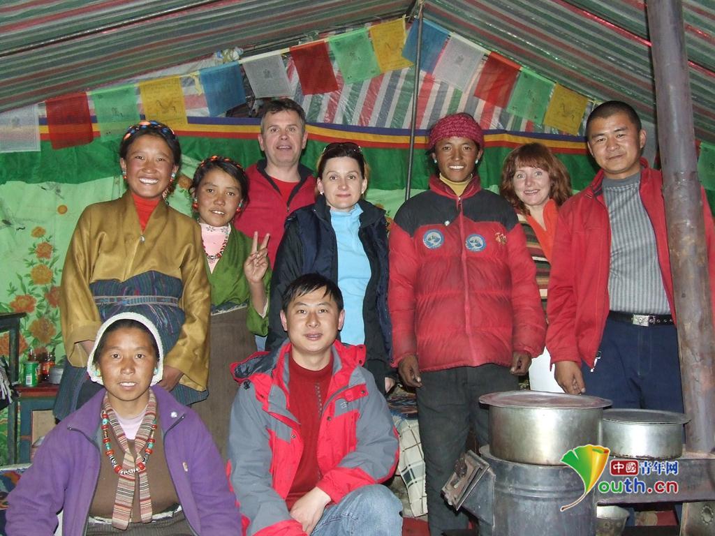 刘萌刚在援藏期间接待外国游客,做藏族文化传播使者 本人供图