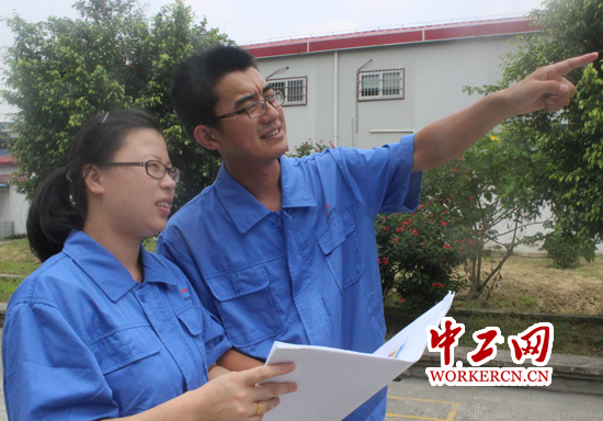 八月羊城,刘涛和张敏在烈日下一起研究工作。 张喆摄