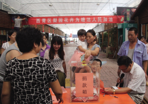 天津港“8·12”瑞海公司危险品仓库特别重大火灾爆炸事故发生后,西青区梨园花卉市场迅速组织市场商户进行捐款,同时,市场的工作人员和游客也纷纷加入到捐款的队伍中来,大家都希望尽自己的一份微薄之力,帮助滨海同胞渡过难关。