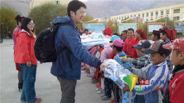 周剑和志愿者给孩子们送去衣物。周剑供图