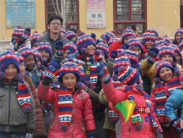 孩子们穿戴上新围巾、手套、帽子,露出了淳朴的笑容。周剑供图