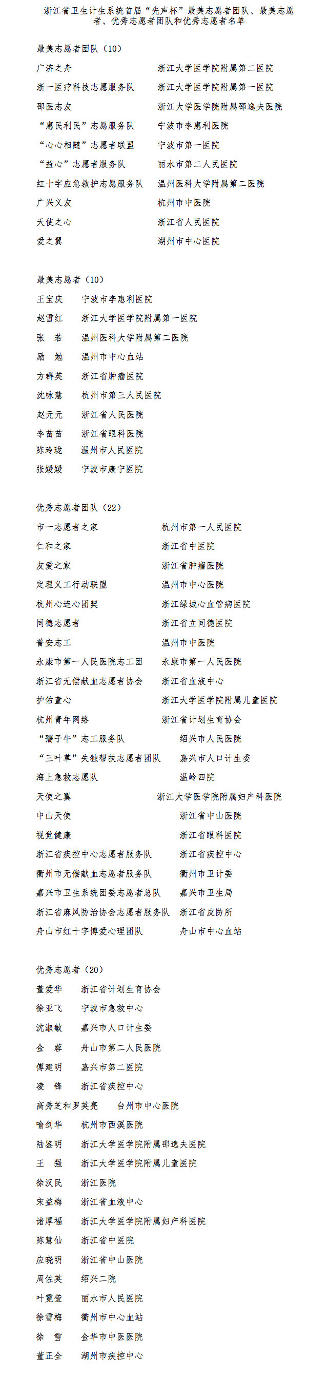 截至2015年8月,浙江省卫生计生系统已有2854支各类志愿者团队、387933人注册志愿者,在此基础上,作为卫生计生系统志愿者壮大计划的“青草计划”也在典礼现场启动。