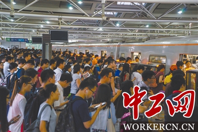 ←8月10日19:05,北京地铁进入晚高峰,10号线日均客流量超过170万人次,而北京全路网18条线路日均客运量已超1000万人次。