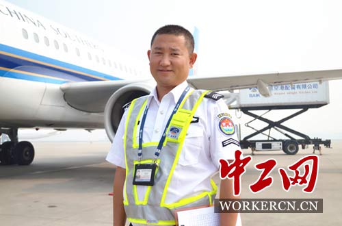 首都机场安保公司飞机监护副科长姚洪涛工作照 赵振龙摄
