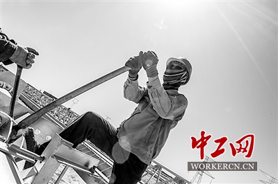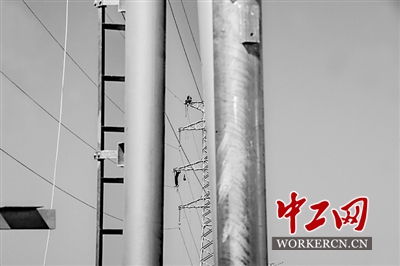 高空架线作业的职工,既需要高强度的体力,更需要在暴晒的阳光下平心静气。