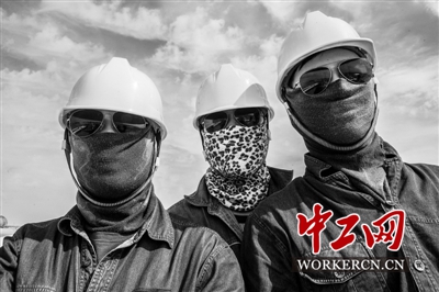 为了自我保护和确保施工进展,在这里的职工人人都有三大“怪”:男人脸上蒙纱巾(防晒);大瓶装水给钳子喝(降温);起早贪黑白日做梦(避暑)。