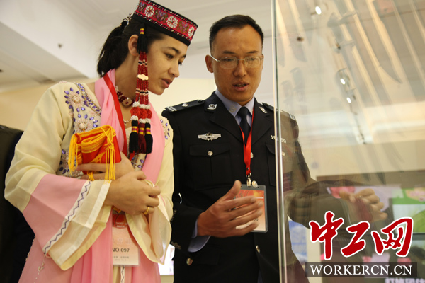 2015年10月8日,宁杰和比比热汗在京参观《新疆维吾尔自治区成立60周年成就展》。摄影:崔岱