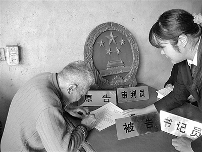 去年3月,当徐刘根在法庭诉讼服务站接待群众时,一位衣着朴素的中年男子走进来,嗫嚅地说想要找庭长。