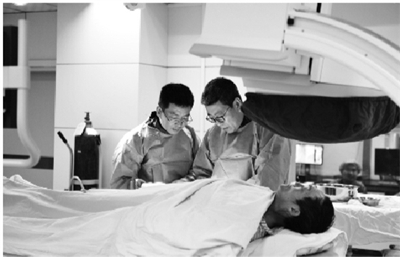 随后,陈方教授便急匆匆赶到位于医院外科大楼三楼的介入科导管室指导手术。此时,患有严重冠心病的72岁姚奶奶刚躺上手术台。陈方教授详细询问了其病情和手术准备情况后,便麻利地穿起手术衣走上手术台,娴熟地开始了手术。不到半个小时,手术大功告成。当姚奶奶被推下手术台后,医护人员告诉其家属,给姚奶奶手术的是来自北京的国内顶尖心血管病专家时,姚奶奶的子女高兴不已,连声称赞:“做梦都没想到能有北京的大专家来给我们做手术,希望北京的大专家们以后经常来!”