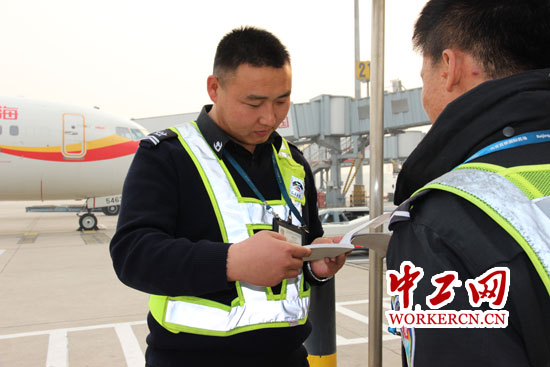 飞行区安检部班长商伟利检查员工台账登记。赵振龙摄