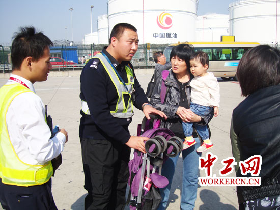 飞行区安检部员工商伟利帮助旅客登机 赵振龙摄