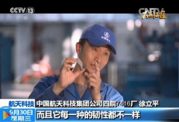 中国航天科技集团公司第四研究院7416厂 徐立平:这个火药的表面很粗糙,颗粒感特别强,不同于光滑的东西。而且每一种的韧性都不一样。