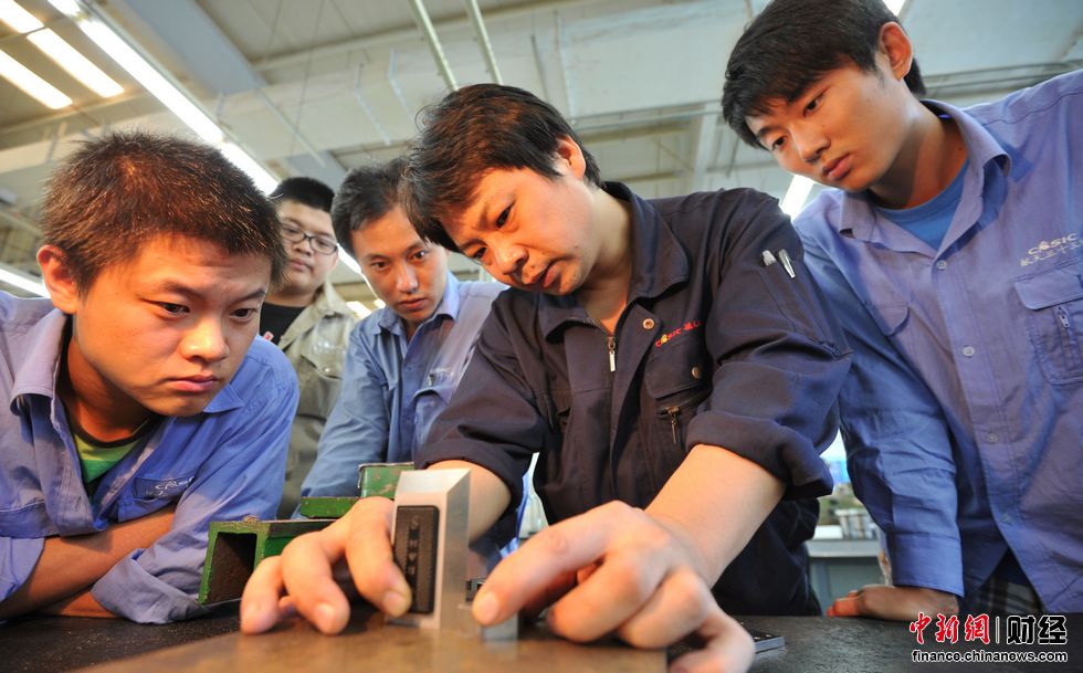 他们的双手在工件上“翩翩起舞”,他们的汗水浸湿出“各国地图”,他们的欢笑围绕在“大师身边”,他们便是33所精密机械制造部钳工班。