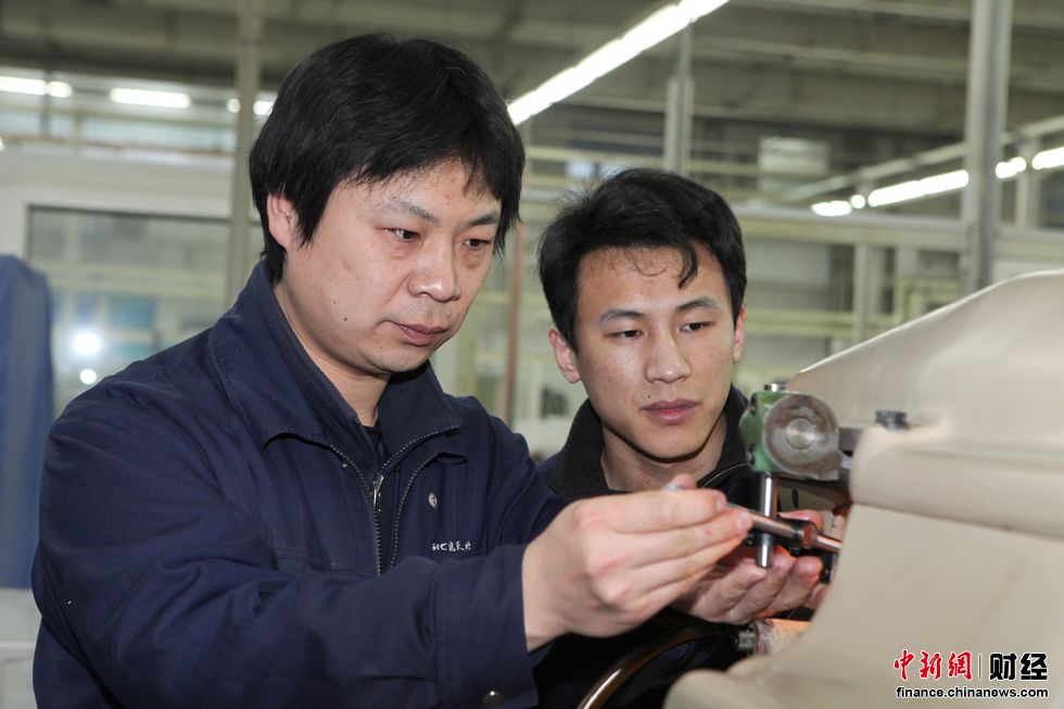 技术“行”班组巩鹏一身蓝色工装服,展板上双眼紧盯着工件的他“大师”范儿十足。“不认识他的人一定不会将他和技能‘大师’联系在一起。”巩鹏的徒弟们说道。