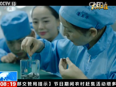 潘玉华要做的是一种叫做植柱的工艺。在一块一元硬币大的电子版(板)上,焊接1144根细小的铅柱。一千多次重复却要保证和第一次一样的精度,没有任何机器辅助全凭手感。设计师陈林告诉记者,正是潘玉华的这一手绝活为卫星的研发提供了有力保障。