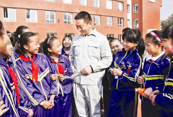 作为校外辅导员,马占国经常与八纬路小学的学生们交流谈心。张薇 摄