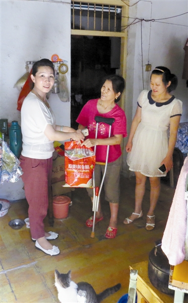 蔡延君(左)走访慰问困难户。冷鹏 文/图