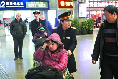 在036服务台后面,总是放着一张轮椅备用,台子上面摆放着打印出来的当日发送列车时刻表,有重点旅客的车次王琳娜会用圆珠笔圈出,需要用轮椅的都要特别标注一个“轮”字,有时候为了方便认出网上预约重点服务的旅客,省得旅客着急,王琳娜会在旁边加注一下旅客的特征。王琳娜告诉记者,越到年底重点旅客反而会越多,尤其是好多在医院看病的会在春节前赶着出院回家过年,每天接送站的病号最少也得十几个,所有重点旅客加起来每天都得上百人,哪一次送站都不敢有差池。