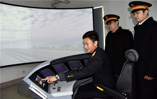 这是济南铁路局济南机务段动车车间的吕向阳在模拟操作室中日常授课的一幕。2009年至今,昔日的动车司机吕向阳为济南、兰州铁路局和青藏铁路公司带出了500余名高铁司机,被亲切地称为中国高铁司机的“好教头”。
