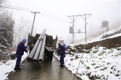 “吊车来了吗?好,马上就走”,2月23日中午11时许,雅安宝兴县五龙乡供电所所长张华康匆匆挂完电话,跳上电力抢修车,冒着纷飞的雨雪,再次赶往团结村……