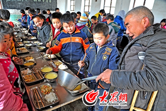 每天中午,冯佃生都要在东卸甲小学的食堂里帮学生们打饭。