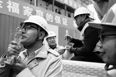 昨天,“首都最美建设者”颁奖典礼在北京中国国际贸易中心三期中建一局项目现场举行,常奇峰等10名建设者获此殊荣。(记者 吴镝摄)