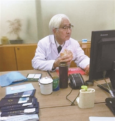 近日,一位白发老医生边啃烧饼边工作的照片被网友大赞。他是浙江余姚市中医院的金中梁医生,今年已经76岁。金医生介绍,他一天坐诊要看四五十个号,每天工作十二三个小时,但这实在再普通不过,连声说“出丑了,惭愧”。