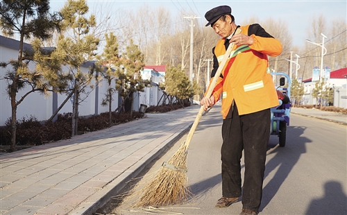 去年,“十个全覆盖”工程在村里开始实施,杨庆林和几个老伙伴主动承担起了维护村子卫生的责任。 “最开始我们是义务出工,后来镇里和村里给我们每人5000元的年薪,还发了环卫工人的衣服、配备了扫路机。”杨大爷说,自己上了年纪种不了地,儿子去年也在村里开起餐馆,全家人收入不成问题,他就想每天找点事做,在他看来,环卫工人这份工作很有意义。