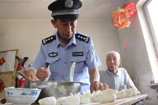 杨建夫为独居老人包饺子。图片来源:沈阳文明网
