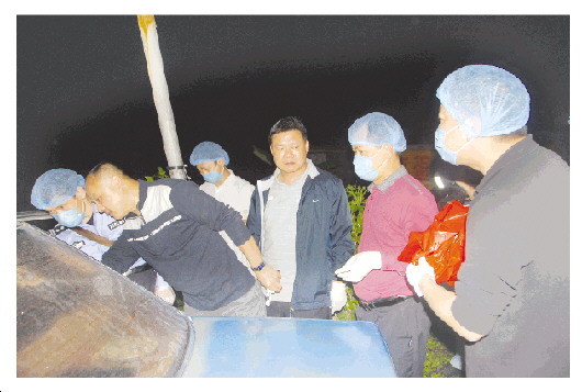 侯文军(左二)及队友在城北抛尸案现场进行勘查。