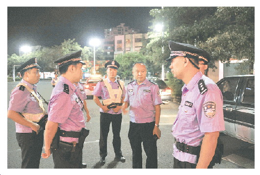 侯文军(右三)带领队员于梅州城区设卡检查。