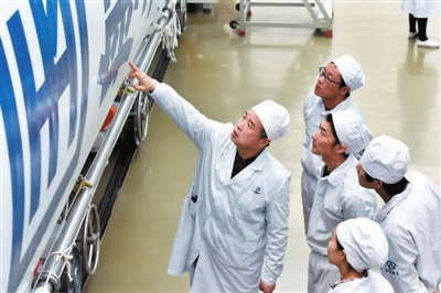 崔蕴告诉记者,他们的工种叫做火箭导弹装配工,虽然进行总装时都是按照设计图纸进行,但是图纸毕竟只是一个蓝图,很多问题只有在总装过程中才能显现出来。“举一个例子,火箭上有数千个传感器,设置的程序是否正确,如何解除它们之间的电磁信号干扰问题,这些都是我们需要判断解决的问题。”崔蕴说,“火箭在空中飞行要靠很多发动机相互作用,调节运行方向,确保火箭沿着轴线直线飞行,如果任意一点受力不均,火箭就会跑偏,上亿元就会成为泡影,因此,即使是一颗螺丝钉的安装,我们都要精益求精,确保准确无误。”