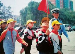 周宝贵护送学生安全过马路。本报通讯员摄